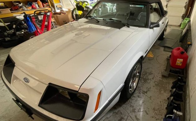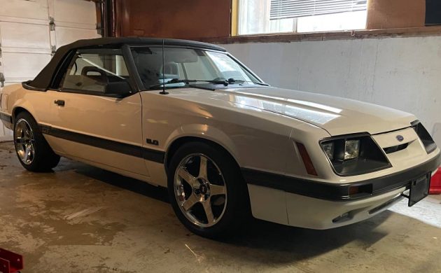 Since you asked Jeff, the four-eyes are my favorite Foxes. This one looks good. A manual transmission convertible, very desirable. This tire and wheel package is attractive, but with seemingly every Fox riding on aftermarket wheels, I’m fine with the stock wheels.