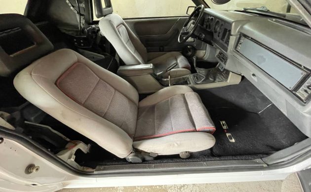 One area you see the distinct difference between the two generation of Fox body is in the interior. For me, this is the bigger influence in a decision about which generation of Fox to buy as the four-eyed model does feel like a significant step back in time, both in terms of design and quality. The instrument binnacle clearly traces its heritage back to the late 70s, and while the Fox body in general wasn’t exactly a high watermark for interior quality, the later cars might feel a bit more acceptable in an era where even econoboxes have stitching on the dash. The seller’s car doesn’t appear to be restored on the inside, as you can see some basic cosmetic flaws and seats that look original (and nicely preserved.)
