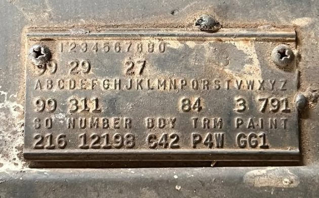 In fact, now is a good time to look at the trim tag to see what’s what. The GG1 paint code is “Sequoia Green,” the 99 under “A” and “B” in the second row indicate the 360-horsepower 413 engine, the “3” under the letter “D” in the second row denotes the four-speed transmission, and the “1” under the letter “E” tells us that this is an air-conditioned car. This is all good news.