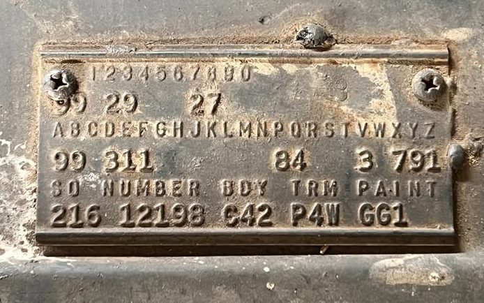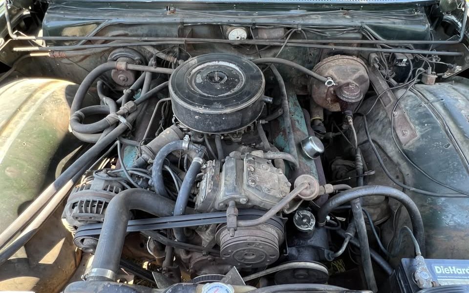 In fact, now is a good time to look at the trim tag to see what’s what. The GG1 paint code is “Sequoia Green,” the 99 under “A” and “B” in the second row indicate the 360-horsepower 413 engine, the “3” under the letter “D” in the second row denotes the four-speed transmission, and the “1” under the letter “E” tells us that this is an air-conditioned car. This is all good news.