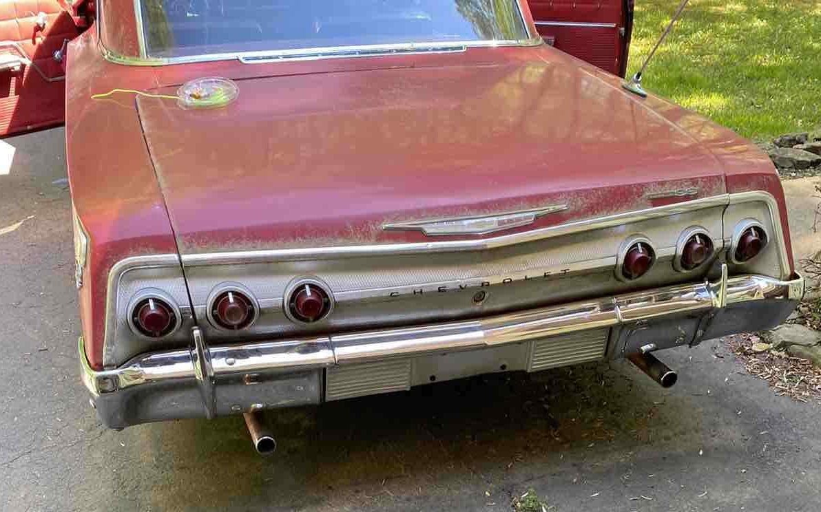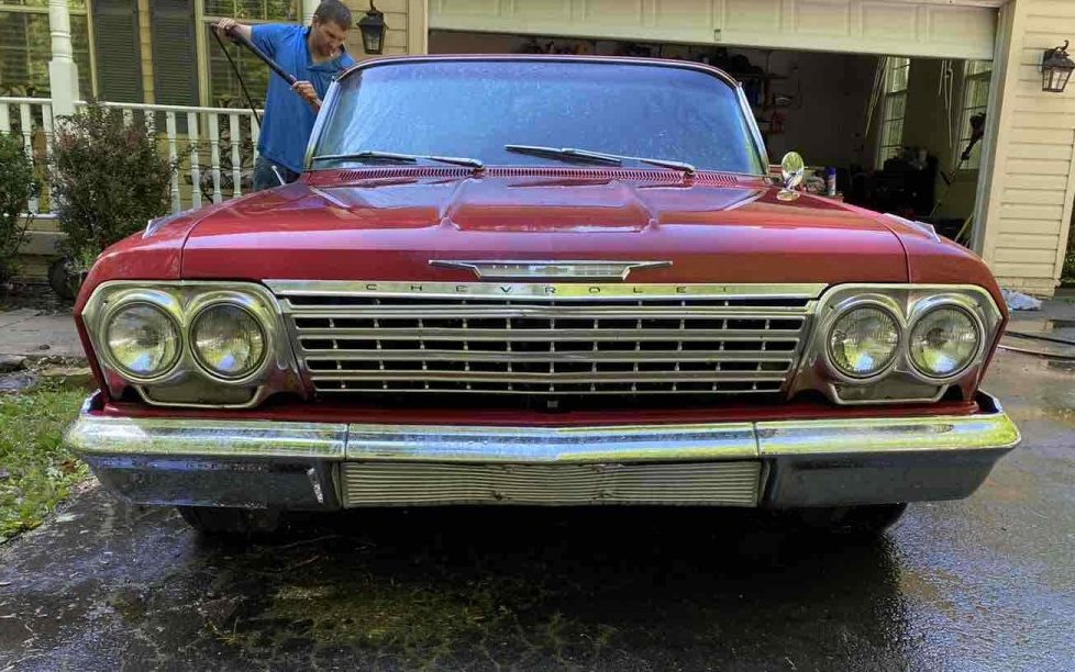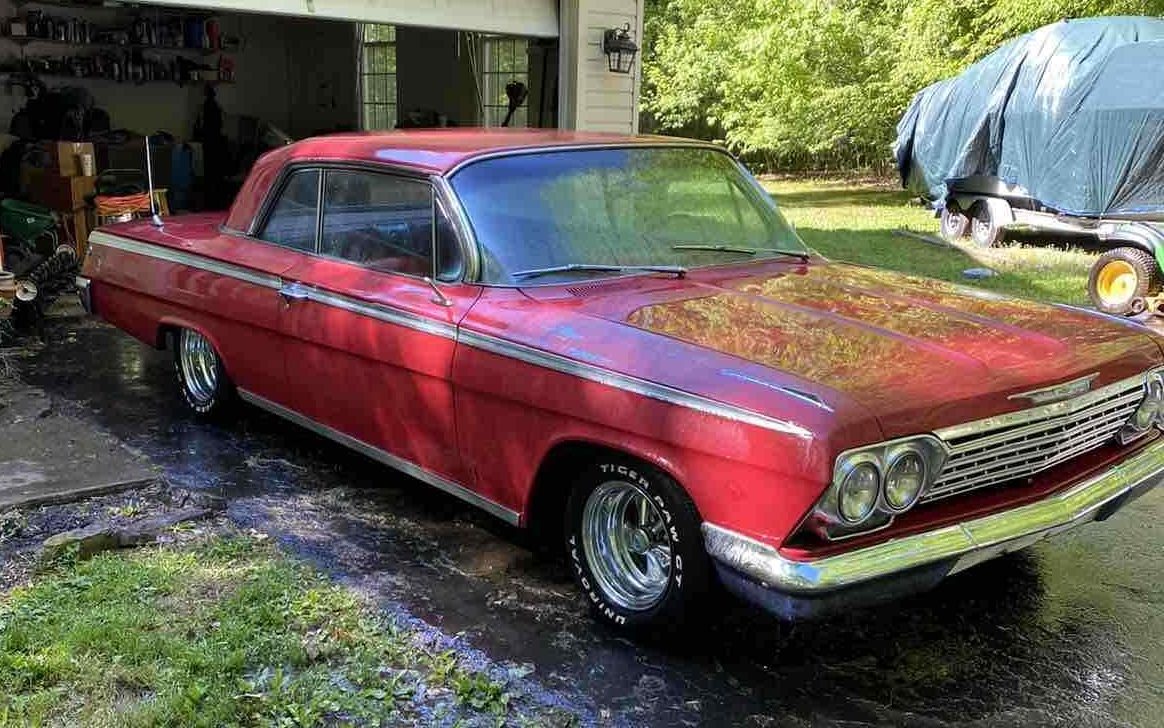 I had that car but with a 409 that I added…same color, same wheels, bucket seats…I paid $20 for it in 1968, with a tired 6 and 3-on-the-tree; red, but not the SS. I also had a 62 convertible with a 283 auto, and a silver hardtop with a 283, 3 speed.