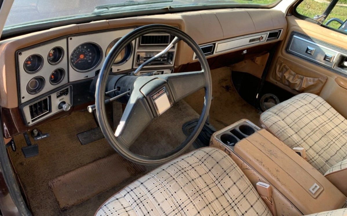 Outside this truck shows some bumps and bruises, missing trim pieces, things like that. Its oh so 1979 “brown” finish has held up surprisingly well. There is some rust in the lower passenger-side fender but the rest of the exterior is not too bad. This Jimmy is typical of the era with its two-tone paint scheme, an acquired taste I guess. The grille has some issues and there are other things to nit-pick but nothing excessive or out of the ordinary. The underside has a lot of surface rust but nothing that looks like rot-through. Being a life-long California vehicle, I wouldn’t be overly concerned about body and frame integrity. The seller states that this GMC has been sitting since 1999 but doesn’t elaborate much beyond that.