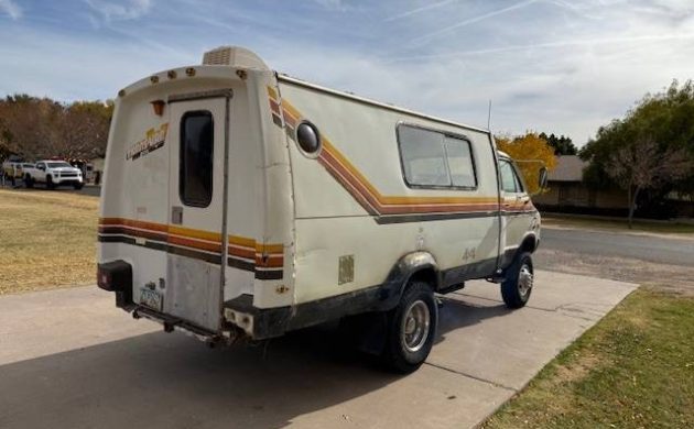 The 1970s were a time when vans became overwhelmingly popular. The supply of muscle cars dried up, and folks began looking for other vehicles to spend their time and money. While custom vans with wall-to-wall shag carpeting, airbrushed murals, and plexiglass windows were the rage, others spent their money on van-based recreational vehicles. Weekend fun machines like this 1978 Dodge TransVan by Champion for sale on Craigslist in sunny Phoenix, Arizona were sold through television commercials. They became a staple of campgrounds, recreation areas, and suburban driveways across our great land. This rare and somewhat modified four-wheel drive version has been stripped out inside and needs extensive work. The good news is that a handy adventurer can pick up this rock-crawling camper with four-wheel drive for $4,700. Is this the type of seventies van project that appeals to you? Thanks to Henry R. for the tip!