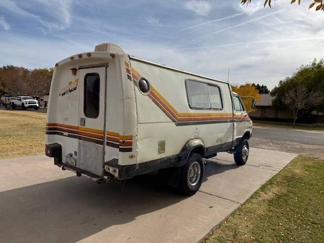 I was in the van conversion business when this was built. We specialized in high end conversions (starting at $27K in 1978). I had two people inquire about upgrading similar units to a higher standard (leather upholstery, wool carpeting, audio system, etc). Neither worked out for various reasons, but I always thought that they were an innovative, practical design and a great alternative to a larger RV. If I were single, this would appeal to me for ghost town exploration, but the center of gravity created by the 4 x 4 conversion is concerning.