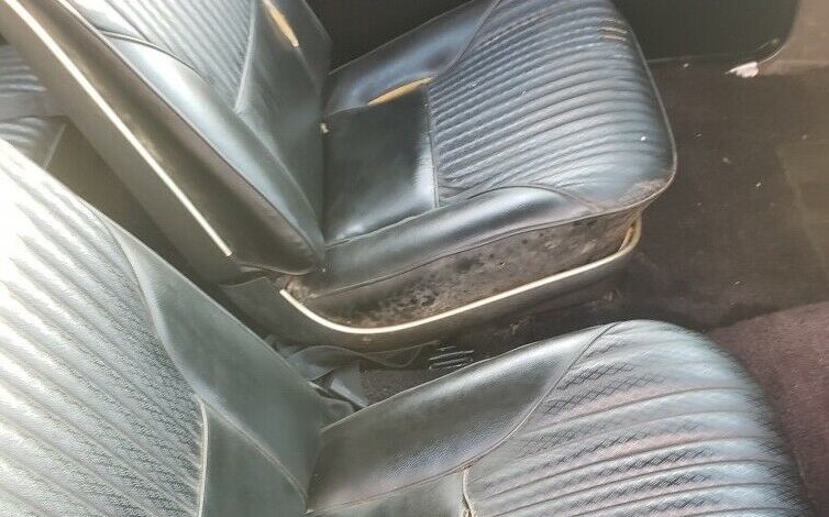 The images of the interior are minimal and not very revealing. The black vinyl bucket seats will need to be repaired, but as is usually the case, the back seat shows as fine. There is no image of the dashboard or instrument panel but it is notable that in spite of the buckets, there’s no center console.