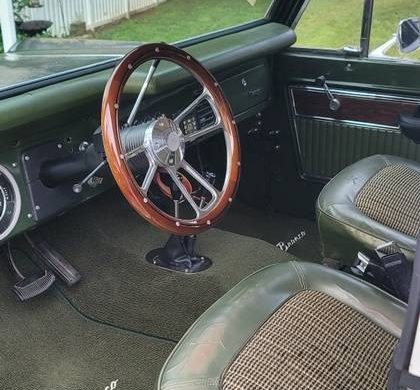 It is fair to say that Ford’s First Generation Bronco range didn’t create the market sensation the company initially envisaged, and sales swung wildly from what was a relatively low base. In 1974, a sudden upswing saw 25,824 buyers take home a Bronco. Wind forward to 1976, and that figure dropped by over 40% to 15,256. One year remained before its replacement hit showroom floors, and it was then that the badge realized the promise with impressive showroom tallies. This 1976 Bronco is a Ranger variant that was ordered by its first owner in Hatteras Green Metallic and Wimbledon White. The seller confirms that they performed a frame-off refurbishment that included replacing the rockers and any other suspect steel and ensuring that the frame was structurally sound. They supply some progress shots in their listing, demonstrating that no corners were cut during the build. They elected to apply paint to the rockers with a “patina” look, which I consider an odd decision, considering it isn’t consistent with the rest of the exterior. The car shines nicely, the panels are straight, and the trim and glass are in good condition. The vehicle sits higher thanks to a combination of a 1″ body lift and a 2½” suspension lift. This was probably deemed essential to allow clearance for the 17″ wheels without cutting the wheel arches.