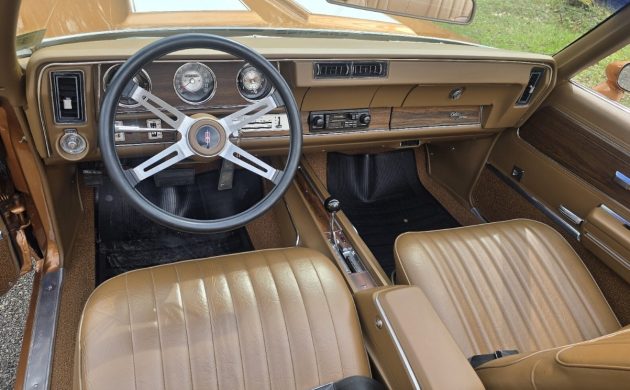Very nice restoration by one of the best in the business. That Olds Rocket 350 is no slouch, but obviously doesn’t possess the prowess of the legendary 455, which was available as an option in ’72. Hope the owner didn’t alter the factory dash to fit the aftermarket radio.