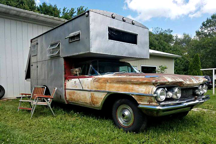 Unique and certainly interesting, the cut up 1950’s cars that became campers are somewhat strange, but were certainly a stepping stone to what campers would become in the future. Cadillac’s seemed to be a popular choice due to their luxuriousness and peppy V8 engine, but this ’59 Oldsmobile shares more in common with Frankenstein’s monster. With a mash up of drive-train parts this camper is a strange but cool classic that would be an awesome project to revive and enjoy. Guaranteed to get attention no matter where it may go, this camper project is offered for a reasonable $3,500. Take a look at it here on craigslist out of Parkersburg, Iowa. Our reader and friend Randy Zimmermann sent us this way too cool and unique camper that’s just begging to hit Route 66. Thanks Randy!