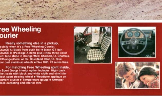 Thanks to Barn Finds reader Rocco B. for the find. The seller includes a helpful advertisement from back in the day to convey what came in this elusive package, and it looks like when this Courier was new, it was very well equipped. In addition to the body-side decal kit and the front push bar, it also has the optional sport steering wheel and the wood applique around the cluster, which indicates the original owner checked the box for the Sport Group interior option. It looks like the sharp aluminum wheels have gone missing over the years along with the “GT bar” that goes in the bed, and those items have got to be near impossible to find these days.