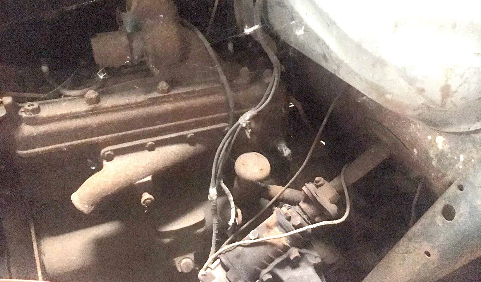 In the one picture provided the engine looks complete, at least from here. There is no word on its condition, so you can assume it is stuck. That’s a 35 horsepower 1465cc flathead four.