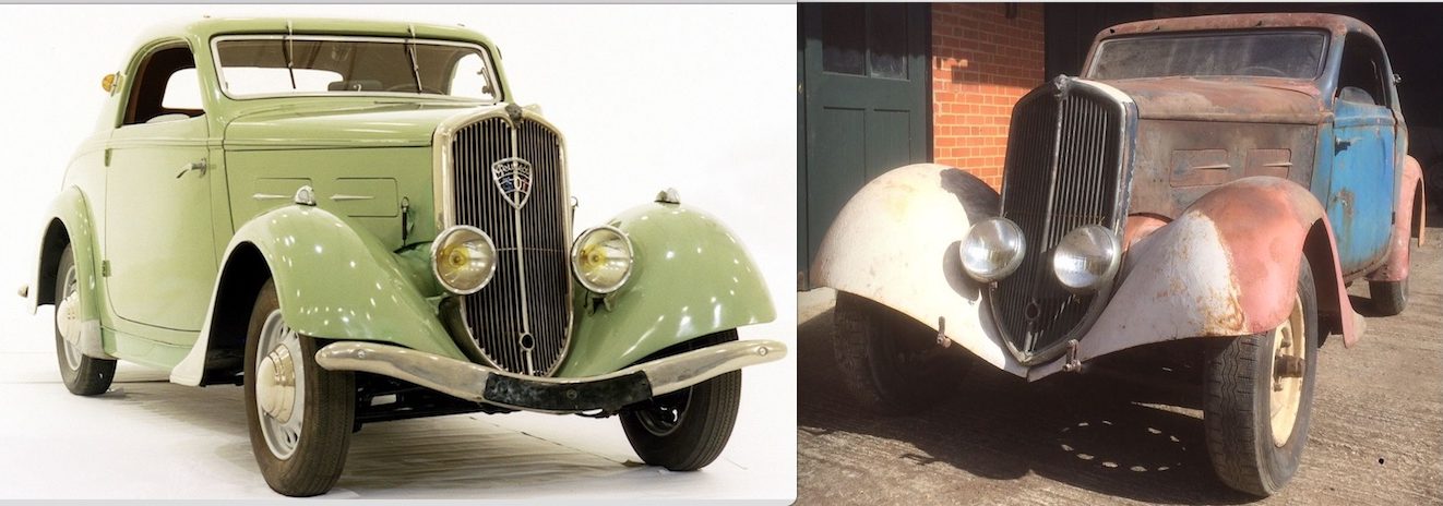 It’s hard to imagine what it would take to restore this car, to make the one on the right look like the one on the left. The description says it’s mostly complete, so unless by “mostly” they mean by weight, there must be a big pile of parts somewhere. Replacement parts will be difficult to find. It will take a very special person with lots of time and a pile of money. Hopefully, there’s someone out there who would like this Peugeot for their collection.