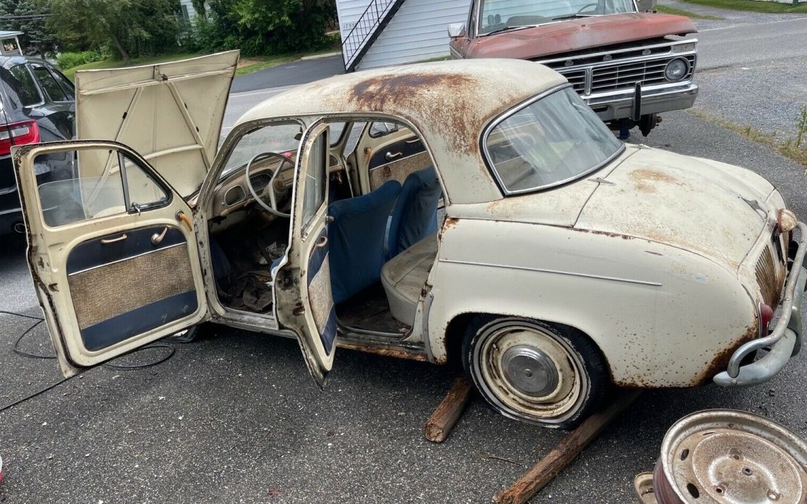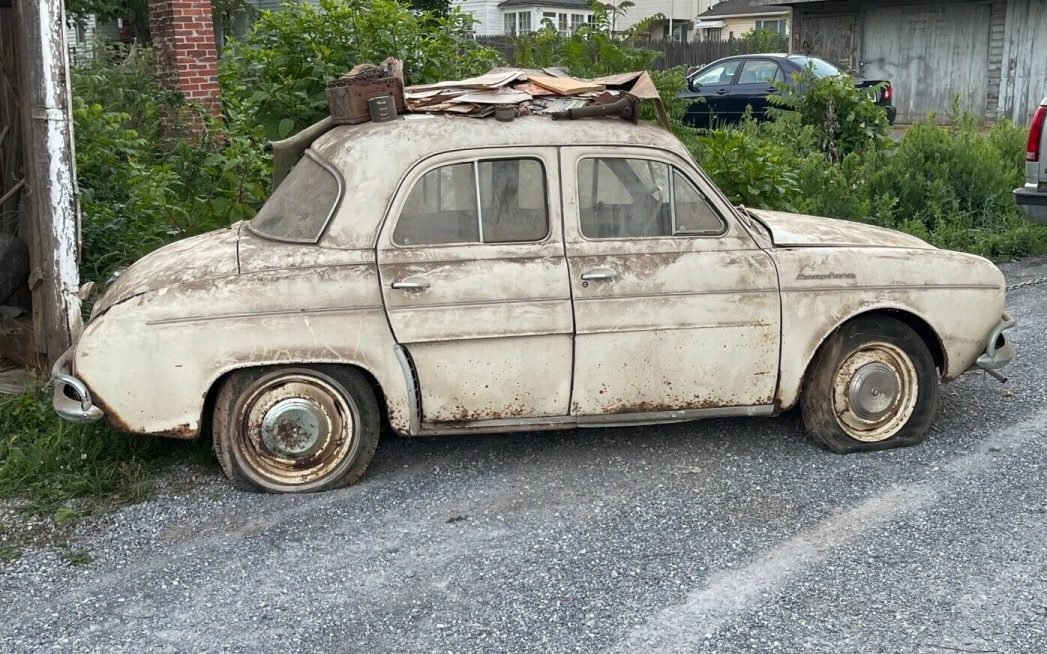 This, is without question, the best Barn Find to come down the pike. 1st, let’s get it right, it was 32.8 hp. As Jay Leno sez, it’s that .8 that gets you over the hill. The poor Dauphunie, always lived in the shadow of the VW, but for folks that actually bought them, they found out it was TWICE the car a Bug was. A conventional motor with a real heater,( kind of) 4 doors, more room, while geared for the same market, the Renault was just a much better car. My 1st car was a 4CV, and had many encounters with Dauphines and Caravelles over the early years. Everybody had a neighbor that had one. The old man had a couple, it was the only foreign car he’d let in his driveway, Dubja, Dubja 2, der, I think he always felt sorry for the French, who really took a pasting . Renaults ( or Renultz’s, like my old man called them) sure hated the salt, but for a little city car, it really did a good job,,for what it was intended. I’d love to have this. Parts may be overseas, because there were just so many made, even though we never saw many, somebody surely has a pile of them. That’s universal around the globe. Back from a time, when foreign car choices were slim, and a VW, Renault, or a random Fiat, was all you saw. Asian cars? Oh, good heavens, they’ll never amount to anything but making cameras and cheap toys,or so we thought. No guff from me on this one!