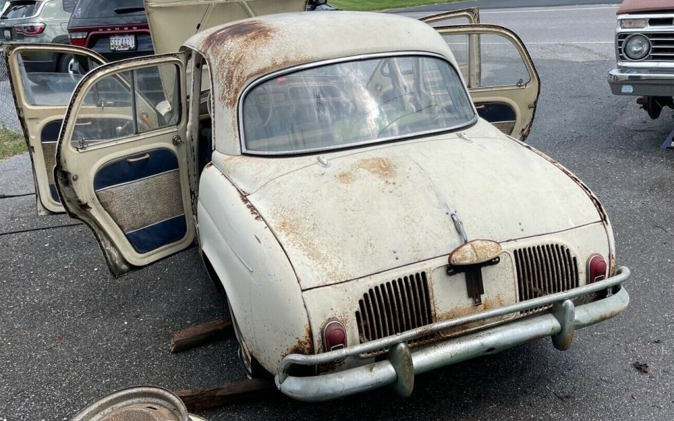 The memories this brings back has me booking a emergency appointment with a psychiatrist for later today. Got one of these foisted on me as my first car and it is a miracle I didn’t become a life long public transportation user. It sometimes got you where you wanted to go and never got you home without a push start or removing the starter and stretching out the spring that made it engage. Was not the envy of anyone at high school. Even the teachers wouldn’t allow it in their parking lot. Ended up riding the school bus till senior year when I scrapped together $400 for a 59 Chev