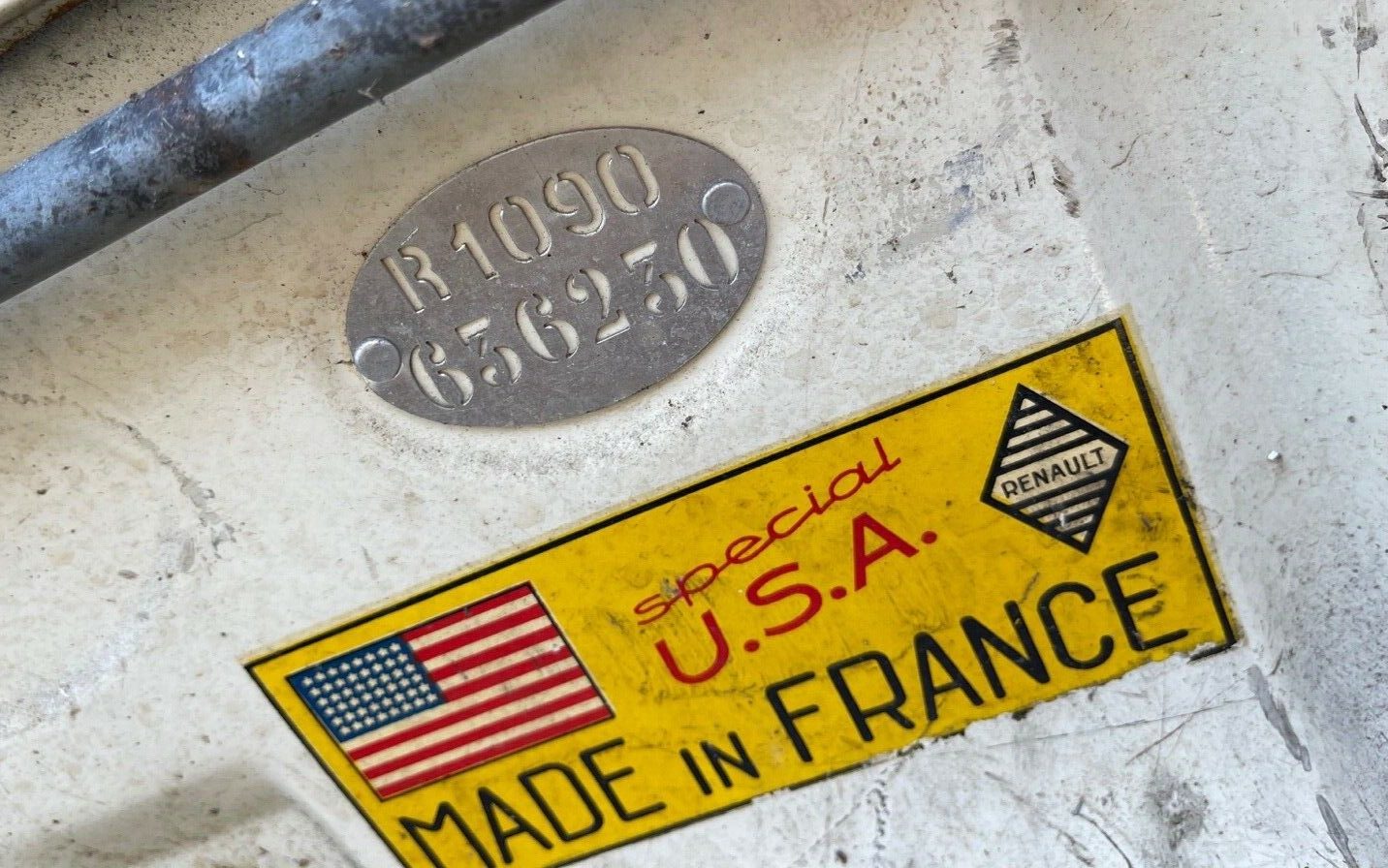 This must be a very early 1959 model ’cause the “special U. S. A. Made in France” decal has a 48 star US flag. Alaska became the 49th state on January 3, 1959, with Hawaii becoming the 50th on August 21st. That alone should boost the value of the car by $10.