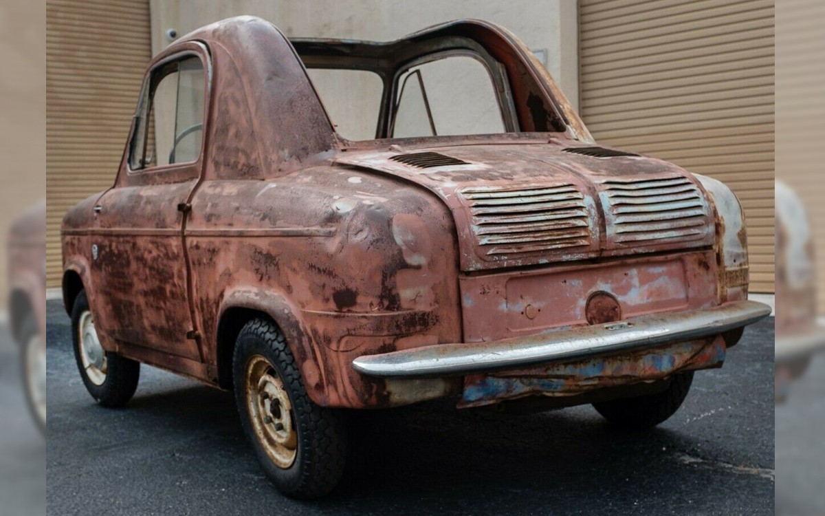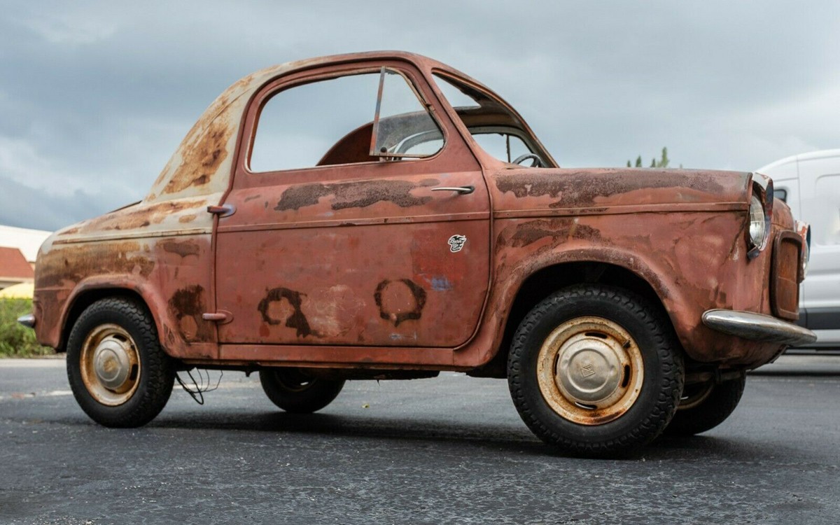 Ok, it’ll be at least somewhat challenging to bring this car back to being the little gem that it would have been when it was new, 60 years ago. The Vespa 400 was made in France but it was an Italian design with an Italian name. They were made for model years 1958 through 1961.