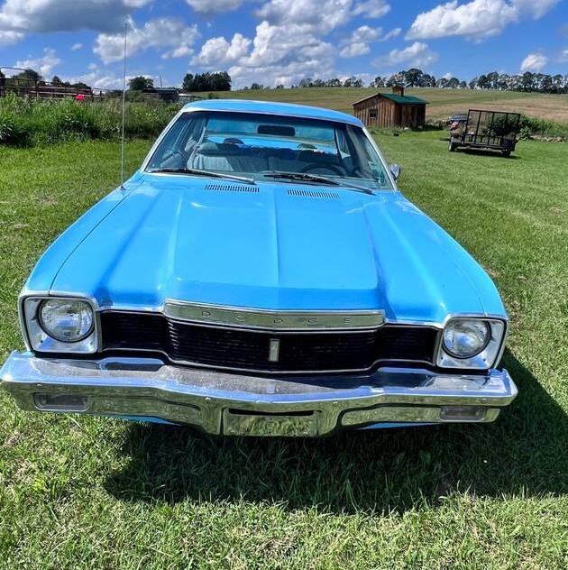 My grandpa bought one of these new in 76 slant 6 2door vinyl top covering rear windows baby blue color grandma drove it after he died