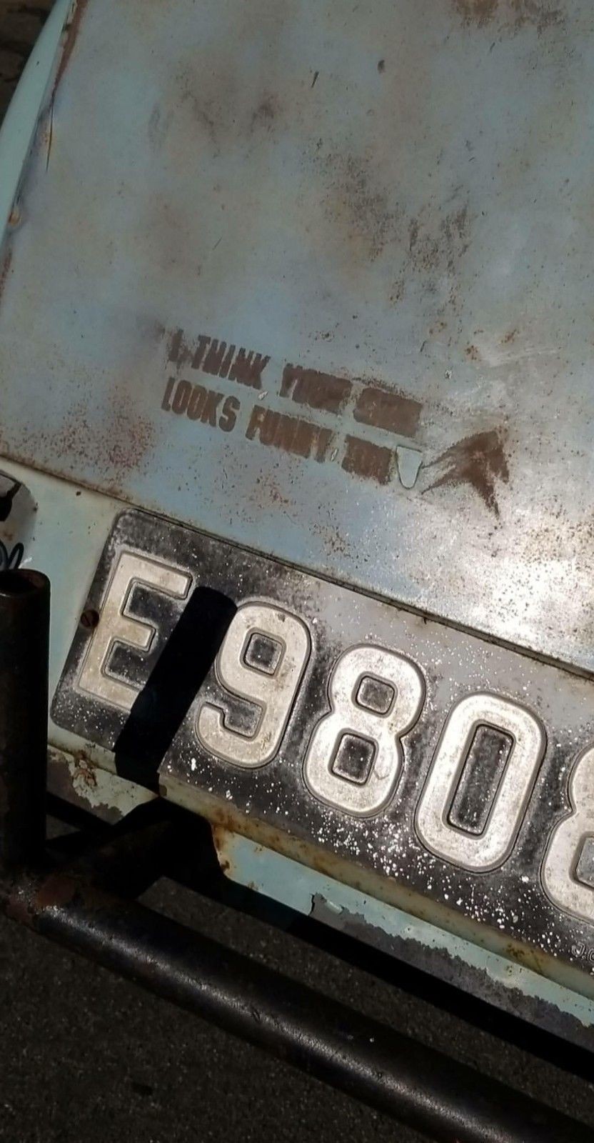 The remnants of the “your car looks funny too” sticker is from the old Chicago Citroen Club of the 70’s-80’s.