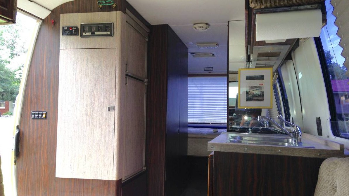 The Glenbrook is a healthy 26-footer, but these GMC-built R/Vs are supposed to be very user-friendly to operate. The body looks very tidy on this one, and the color is a nice change of pace over the drab examples we recently featured. All glass looks good and the seller notes that his dad spared no expense in making this GMC into a reliable cruiser: “April 2014 had Billings RV install a brand new custom 455 engine and transmission. $13,795 worth of work was done at that time: new motor, transmission, batteries, belts, exhaust manifold, filters. There are only 542 easy miles on this new motor, and 54,803 actual miles on the chassis.”