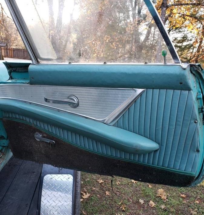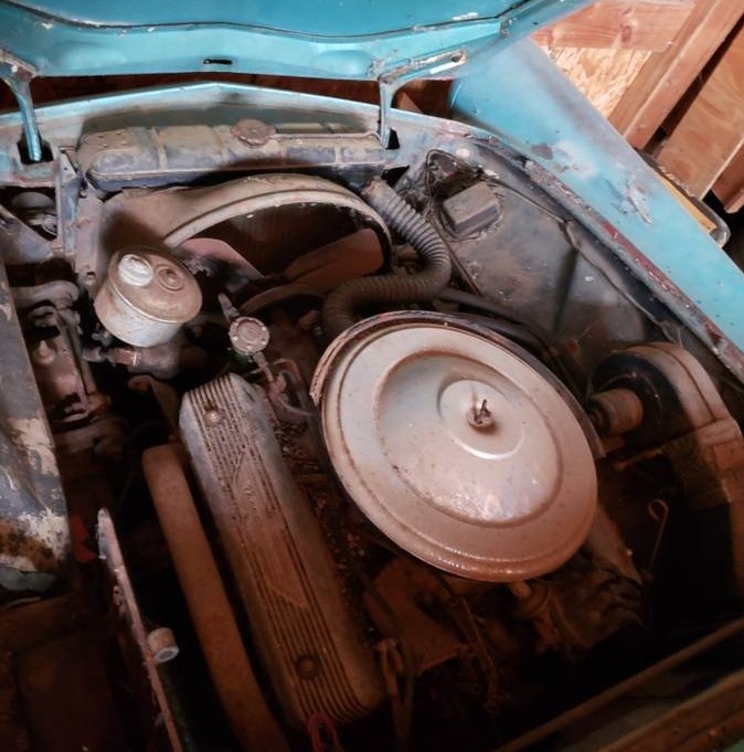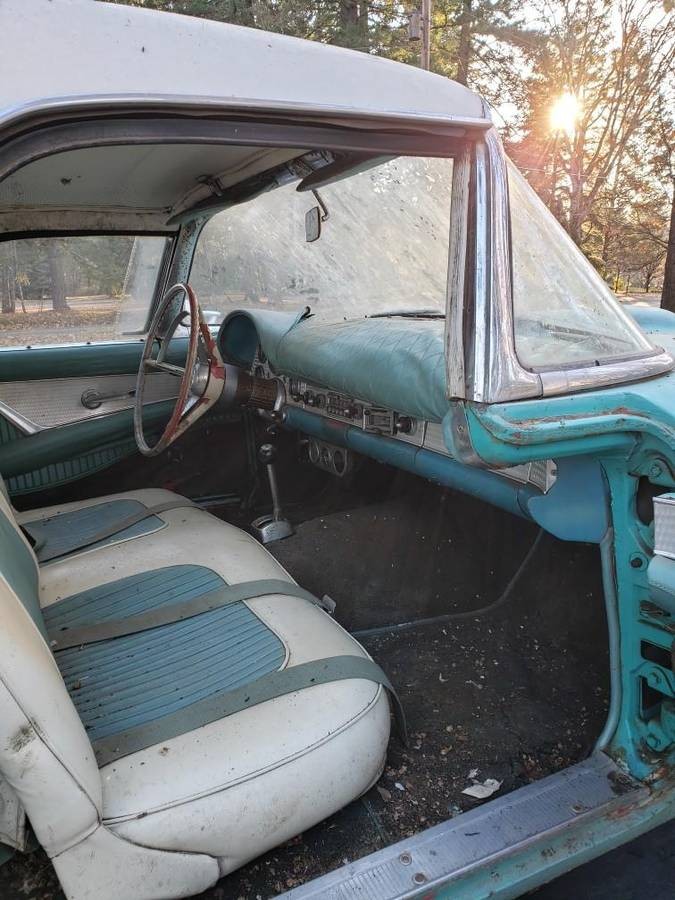 The car’s paint combination looks to be Colonial White over Starmist Blue and is dirty and faded for its time in the lock-up. There is some surface rust along the bottoms of the rear quarter panels, but nothing problematic is revealed in the other pics. These cars were available only with V8 engines, so either a 292 or one of several 312 cubic inch motors were available. We don’t know which applies to this car, so perhaps an astute T-Bird fan will be able to enlighten us. An automatic transmission shifter appears in the floorboard of the interior which looks in good condition considering the age of the car.