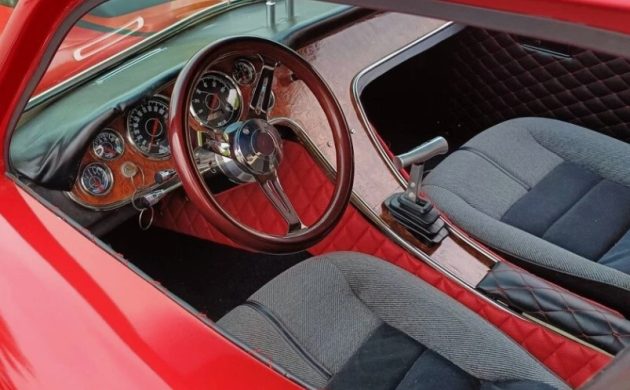 The drivetrain includes a 327 cu. in. V8 breathing through a Holley 650 cfm four-barrel and exhausting via ceramic-coated headers through a tuned stainless exhaust. A Shotgun Bill’s Scoop® is mounted atop the bonnet. The engine is paired with a six-speed Tremec, driving through a rebuilt Dana 44 rear end. The brakes are completely new, as are all the hoses. The new aluminum radiator is augmented by electric fans – that small block generates plenty of heat and the minimalist grille needs all the help it can get. The seller doesn’t give us output stats – nor any comment whatsoever about how it drives – but a reasonable estimate from other Kellison builds is 300 hp. The car’s dry weight is under 1900 lbs, so it’s gonna be a handful.