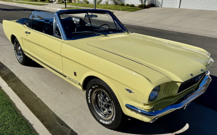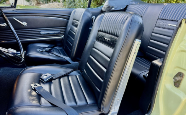 A pretty C-code 289 sits under the hood, pumping out 200 hp with a 2-barrel carburetor and a C4 automatic transmission. Some of the features include power steering and an aftermarket sound system. We assume this was a “luxury” interior Mustang to begin with, but the reupholstered seats include GT emblems, which would have been added as a tribute. Though the car is not exactly like when it left the factory, it’s still one of the nicest first-generation Mustang convertibles out there.
