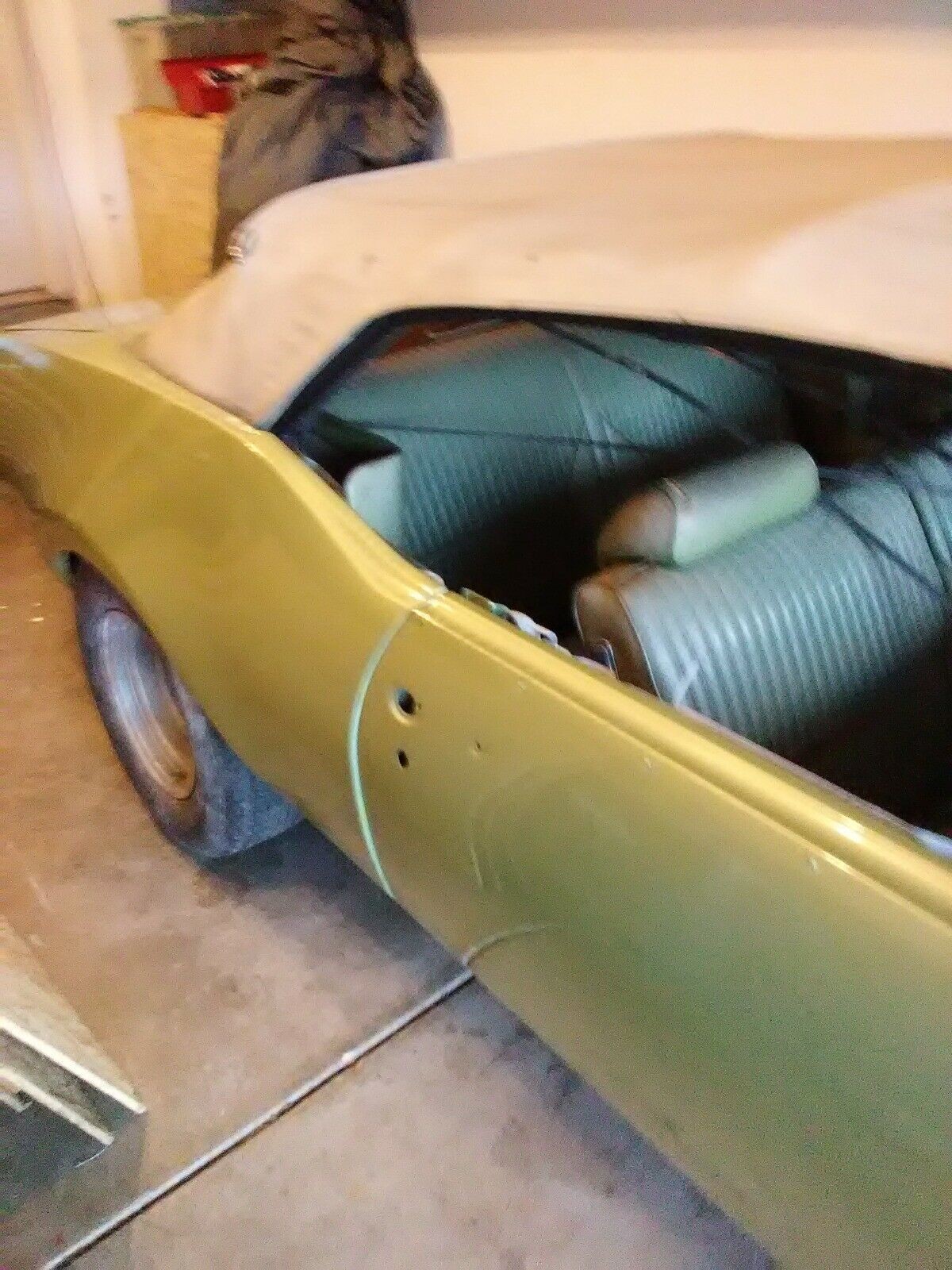 Does this bring back memories and tug at heartstrings. My second car, at 16 was a 69 Olds 442 Convert. Be fun to get another. Can’t really tell if it is gold or green!