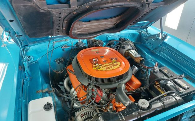 Standard in the 1969 Road Runner was the 383 cubic inch V8, which produced 335 hp. Optional was the N96 Air Grabber intake, which has been added to the seller’s car, either at the factory or sometime later. We’re told this is a numbers-matching car, though the 727 automatic transmission has less than 700 miles on a rebuild. The odometer is just about to click over the 100,000-mile mark (just 21 to go!). It must sound great with the new and complete dual exhaust.