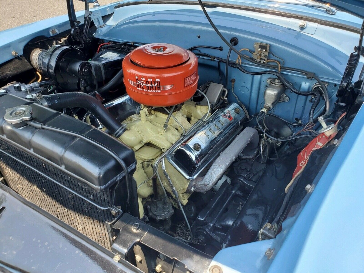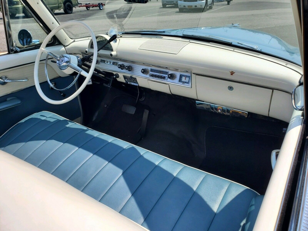 One area where the buyer won’t be spending a dime is on this Sunliner’s interior. More than 20-years have passed since the owner performed his restoration, but it presents as if it were completed yesterday. The seats wear a combination of Blue and White vinyl, which complements the exterior color scheme. This theme continues onto the remaining upholstered surfaces, and there are no signs of any physical damage or stains. The painted surfaces are perfect, the gauge lenses are clear, and there is no wear on the wheel. Ford didn’t offer an abundance of factory options in 1954, but this car comes with a clock and an original pushbutton AM radio.