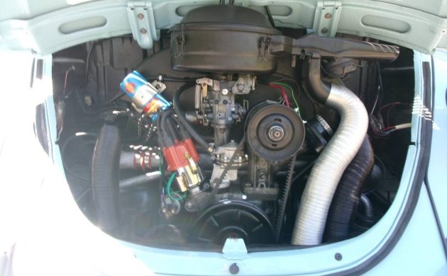 Even though the Super Beetle was 3.2” longer, 1.4” wider, and 100 pounds heavier than a standard Beetle, there was nothing Super-Duper about its engine. Super Beetles were still using the same 1600cc air-cooled 4-cylinder engine as standard Beetles, but behind a wider rear lid that now has 26 louvered vents. This one has the standard 4-speed manual transmission. Located in Spartanburg, South Carolina, this cute and clean ’72 Super Beetle Convertible is for sale here on craigslist for $30,000. A special thank you to Mallory D. for spotting this Baby Blue Beetle and sending it our way. It looks Super.