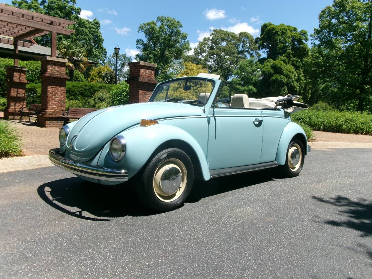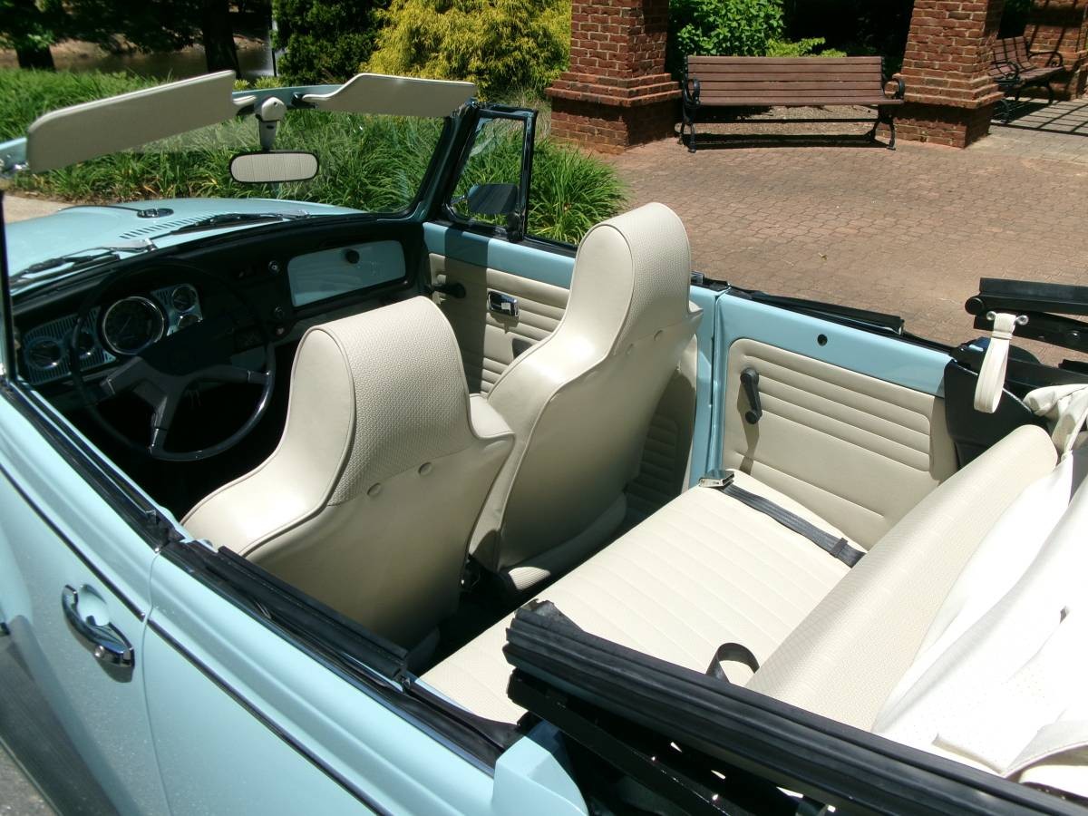 The Super Beetle Convertible was at the top of the price list at about $2,600 and here’s one that’s fresh off a recent restoration. Six colors were offered for the Super Beetle in 1972 and this one is showing off a pleasant shade of Marina Blue. The seller claims everything is in new or like new condition and has only been driven 17.8 miles since the nut a bolt frame-off restoration completed by Elite Customs in Spartanburg, South Carolina. Everything sparkles and shines and the new beige/off-white manual convertible top is a tasteful compliment to the Bug’s baby blue finish. One thing I noticed is that the spare tire has the standard silver-colored slotted wheels, but those aren’t present on the front and rear blackwall tires.