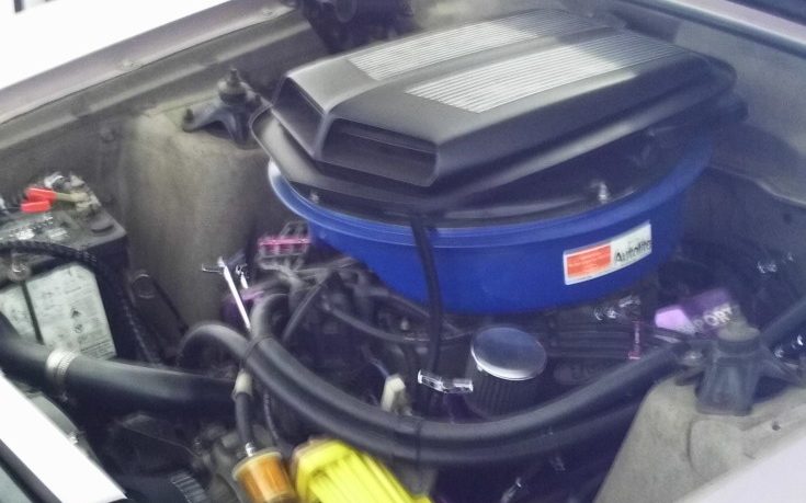 This Falcon, with its silver-violet finish, presents well though the seller does not elaborate on the physical or aesthetic condition of this 119K mile example. Nevertheless, the images do it justice and nothing seems disturbed or out of place. Enhancing this Falcon’s performance attitude are the Daytona wheels, Cobra-Jet hood scoop, rear window louvers, considerable chin/tail spoilers, and a rear-up stance. With its under-car, blue LED accent lights, this Falcon is hardly a stealthy car!