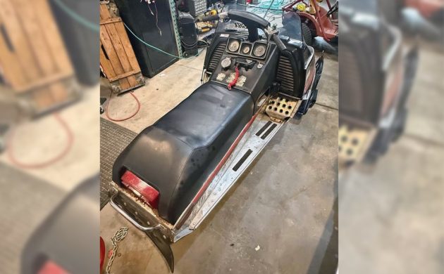 You can see the radiator at the rear of the 80-horsepower, 439-cc two-stroke twin-cylinder engine, providing much-needed cooling for this lightning-fast sled. The only usability issue with these models was that they didn’t have Yamaha’s famous Autolube oil-injection system, and you had to mix the oil and gas. So be sure to carry some extra oil in case you’re on a ride longer than the 7-gallon gas tank will take you without filling up. The seller says this one has new pistons and a restored hood and seat cover. $3,000 is a bit more than this one cost new, but as I always say, a Hemi Cuda isn’t $4,000 anymore either. Values go up on some vintage vehicles, and this important model is one of them. Have any of you owned a Yamaha snowmobile?