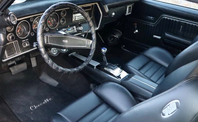 This Chevelle’s interior is a mix of old and new. Aftermarket additions include a set of TMI bucket seats, a B&M shifter, a retro-style stereo, and a few underdash gauges. The remaining Black vinyl trim is correct and is in good condition. There isn’t much to criticize, unless you prefer authenticity. Reversing the changes is possible, but when you add this car’s air conditioning to the equation, leaving the inside untouched guarantees a comfortable motoring experience. The only question mark hanging over the interior is the condition of the dashpad. It is hidden beneath a cover, but if it is cracked, replacements are easily found.