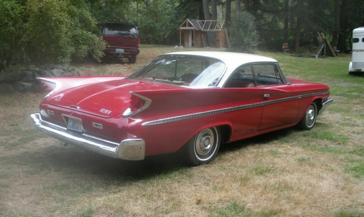 Only two series of DeSoto cars were offered for 1960, the “entry-level” Fireflite (like a Chrysler Windsor) and the more upscale Adventurer. 55% of ’60 DeSoto’s sold were Fireflites and the 2-door hardtop offered by the seller was only of only about 3,500 made. And it’s unlikely that more than only a small percentage of these machines have survived after 62 years. This one has done so very nicely and is said to be rust-free. The white over red paint presents very well, but there must be some flaws in it as the seller was planning to send the DeSoto to the paint shop before deciding to sell it.