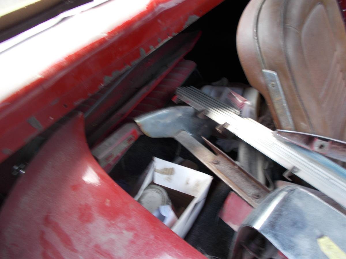 You can see evidence of this as you look into the interior. There is red paint under where the sill plates should be, in the hinge area, and it looks like the doors have red paint in the area normally hidden by the door panels. It must have taken a long time to disassemble so much of the car to do such a good job. At any rate, a treasure trove of missing parts are seen inside the car. It would have been nice of the sellers had laid all of these pieces and parts out and taken a few clear pictures of them.