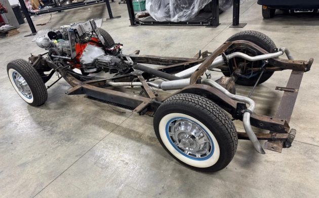 The seller confirms that someone removed the body from this Corvette for a restomod build approximately six months ago, but what remains shows great promise. The seller states that the frame is free from rust and accident damage, wearing nothing beyond dry surface corrosion. With the vehicle dismantled to its current state, completing the process so that the frame could be media blasted and painted or powdercoated would seem the most logical first step on the path to returning it to its former glory. That would also present a golden opportunity to replace items like the fuel and brake lines to minimize the chance of future problems.