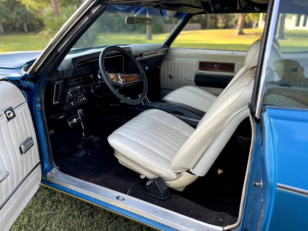 According to the seller, the blue paint needs buffing (looks good now, but most of the pics are in the shadows). And there are three small rust spots, although we only see one. The two-tone white and black interior (bucket seats!) looks good but the headliner needs replacing and the seller is sending a new one along with the car. This is a well-optioned machine, including power windows which you normally don’t associate with a muscle car. Rear defroster, too (gadzooks!). Other than the original Impala SS of 1961, the ‘69s are probably the rarest you’ll find, in any condition.