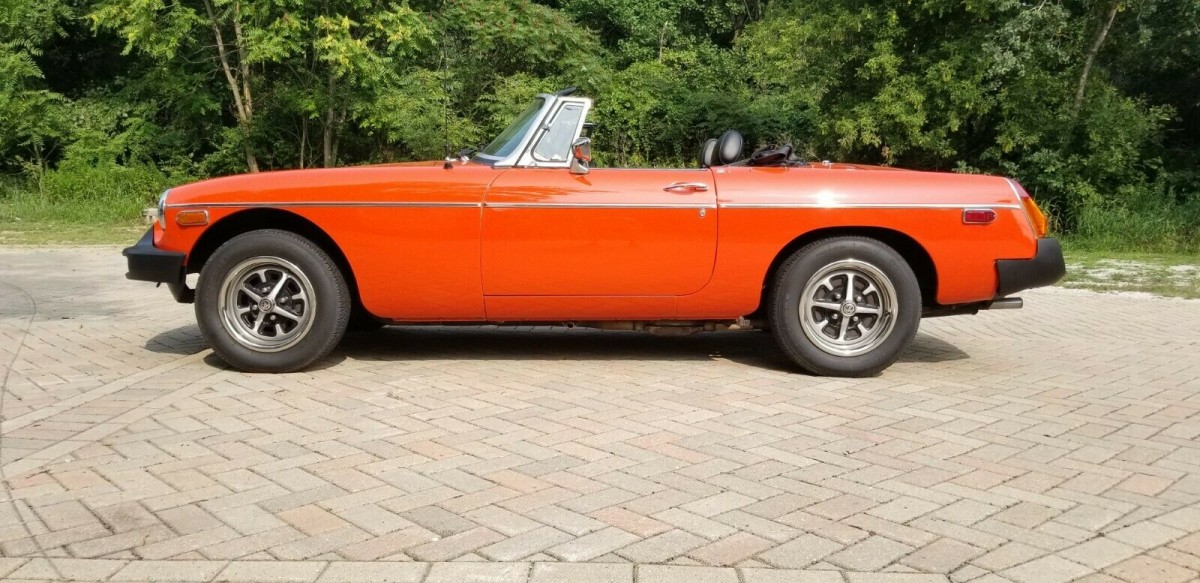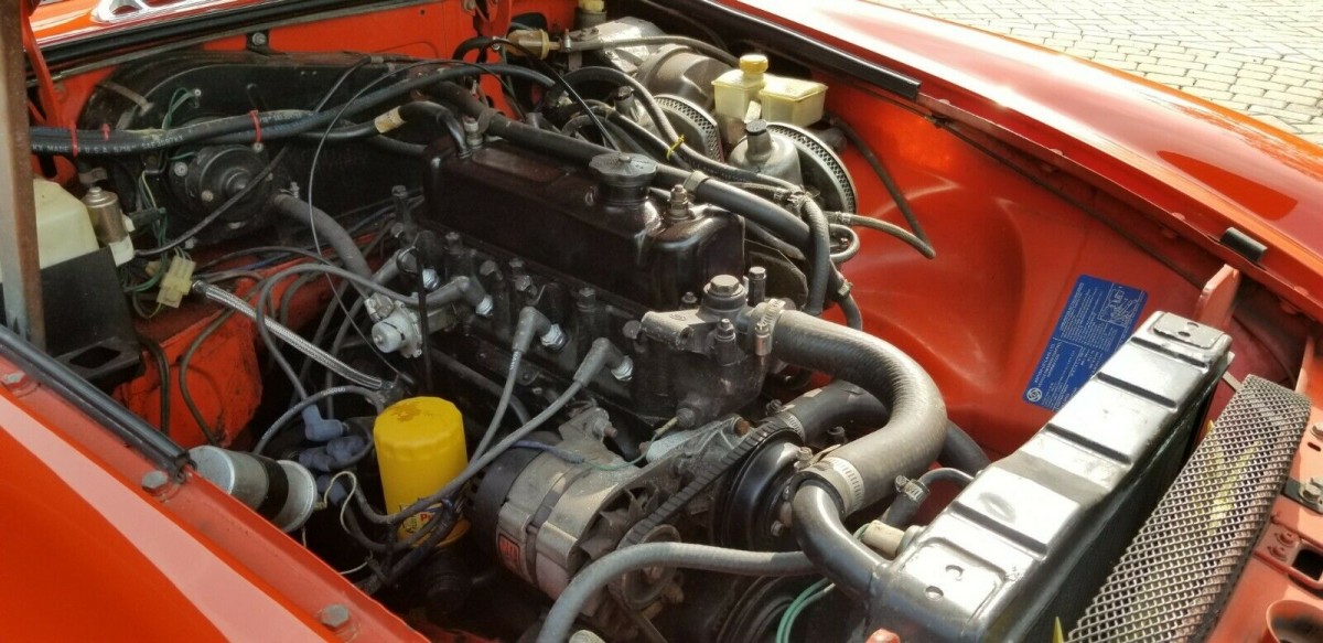 One nit to pick, Adam, in your write up is technically this is NOT a 5 speed transmission. The overdrive does electrically give you a 5th gear, but to be clear you don’t have “5” on that shift knob. This distinguishes this car from conversions done using actual 5 speed transmissions on MGs. Very common swap on the diminutive Midget using Datsun gearboxes. Orange is one of the better colors available on the rubber bumper MGBs. I
