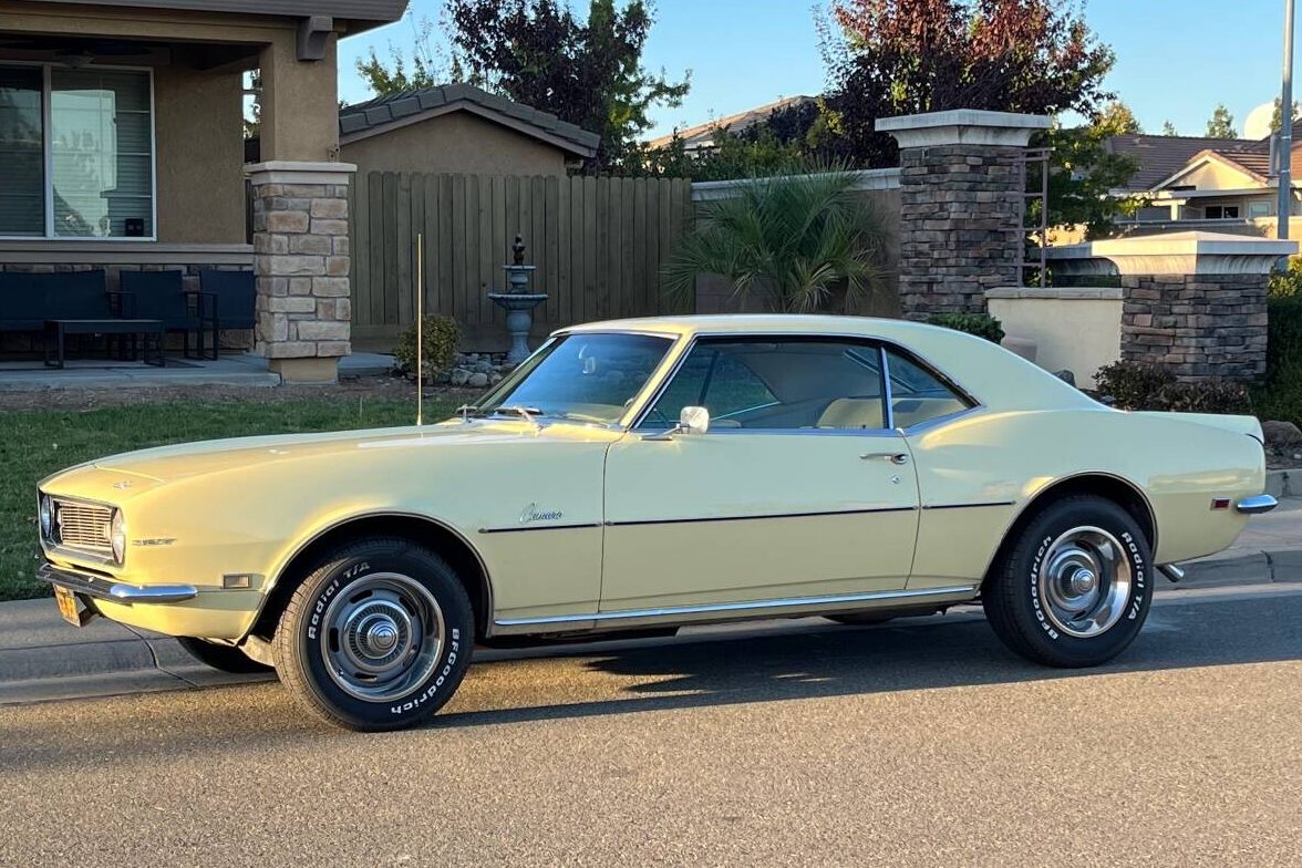 Funny, this ‘68 Camaro hardtop, twice the mileage of my ‘67 Mayfair Maize Firebird convertible, having the A/C compressor removed, radio replaced, incorrect later “SS” wheels added, but ITS A CAMARO.