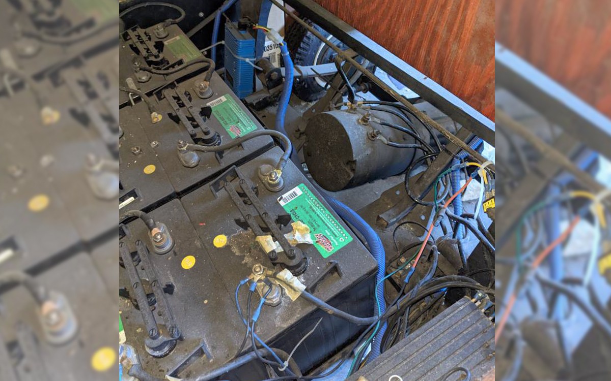 Here are the motor and batteries. The seller says that the batteries are a year old which is good news and, as always, you don’t want to get into a head-on crash in an Electra King. But you don’t want to do that with any vehicle. Have any of you driven one of these things or, better yet, owned one?