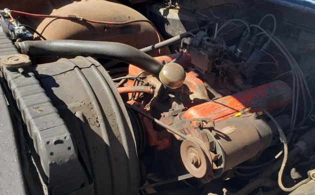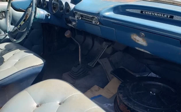 The 185 gross HP, 283 CI V8 engine, said to be original, is still holding court in the engine room. It’s connected to a three-speed manual, floor-shifted transmission and is said to “start right up.” Included in the sale is a 1959 vintage four-holer intake manifold and Rochester 4-Bbl carburetor, as well as a Muncie four-speed manual transmission of unknown provenance. The seller adds, “new tires on front…brakes work good…new gas tank…new air shocks…”