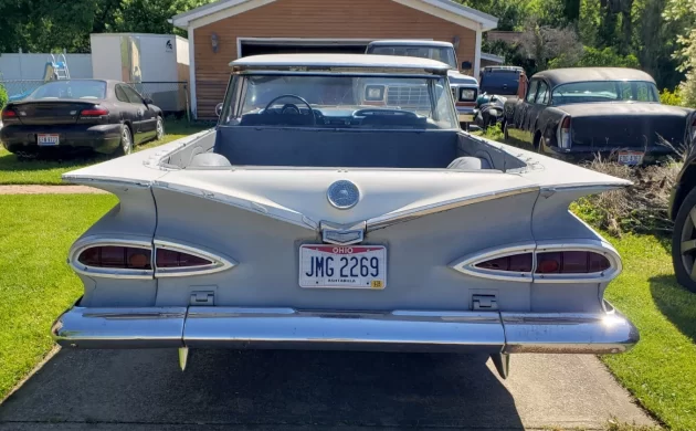 What to make of Chevrolet’s 1959 El Camino? What to make of the 1959 Chevrolet, in general, I suppose I could ask, considering its late fifties, over-the-top styling. And from my perch, that exaggerated styling is even more obvious on the new for 1959 El Camino, such as this Conneaut, Ohio example. This subject is a project with possibility, so let’s take a closer look. You can find it here on eBay, where it’s available for a current bid of $10,946 with the reserve not yet met.