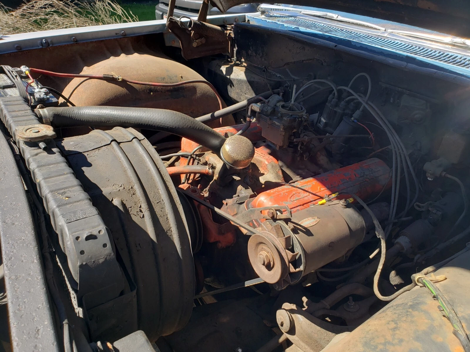 The 185 gross HP, 283 CI V8 engine, said to be original, is still holding court in the engine room. It’s connected to a three-speed manual, floor-shifted transmission and is said to “start right up.” Included in the sale is a 1959 vintage four-holer intake manifold and Rochester 4-Bbl carburetor, as well as a Muncie four-speed manual transmission of unknown provenance. The seller adds, “new tires on front…brakes work good…new gas tank…new air shocks…”