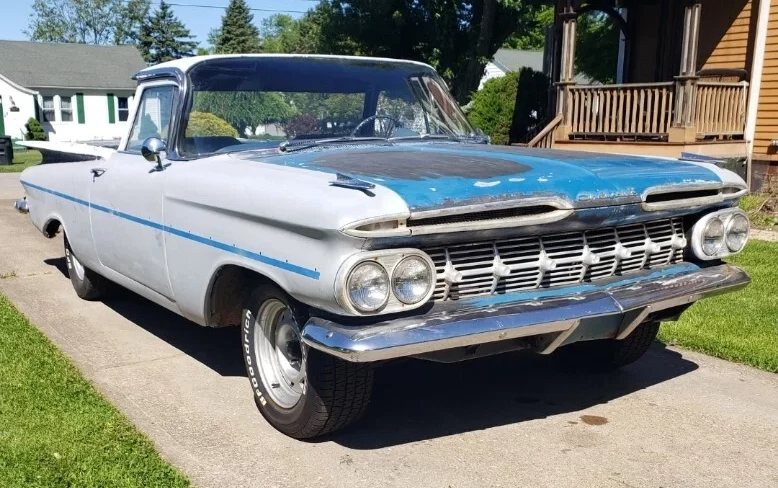 I always did like these 59 El Caminos. I,d like see under the body. The ad does mention it. I ,d want to look it over good and check it out good. It does have style—easy to work on and made alot better and safer then the new ones now days. I have a black steering wheel.
