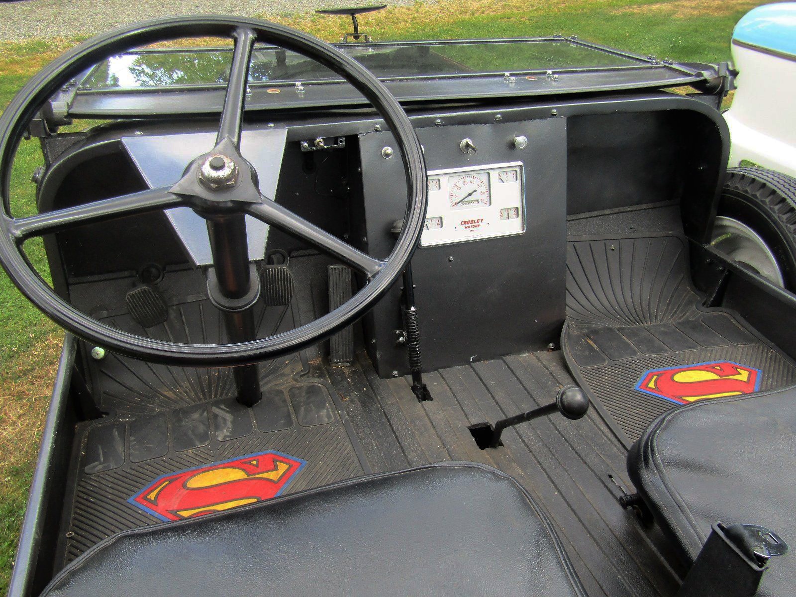 This is a neat little thing. This Farm-O-Road has been “restored”, but the color isn’t super appealing compared to the bright, toy-like colors that they offered. Also the Superman theme is.. different, and it probably won’t appeal to a lot of buyers who may have to repaint portions of it to get rid of those logos. Crosley made the Farm-O-Road from 1950 to 1952 to take advantage of the agricultural market and a lot of them that you’ll see have dual rear wheels with aggressive tread for farm duty. They were meant to use as a tractor, or at least for light-duty tractor uses, and then a person could take off one tire from each side in the rear and go to town, literally.