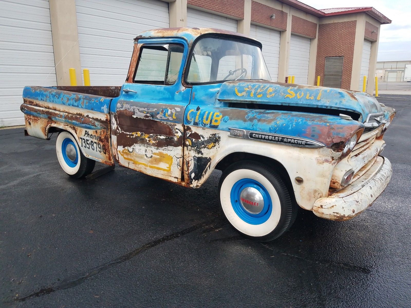 This is one busy, cool, possibly somewhat contrived, maybe real “patina” job. Maybe I’m wrong and maybe it’s original and just faded, that would be fantastic. Either way it is about the most eye-catching Apache pickup that I have ever seen. I love the look myself. Heavy patina/faded-paint is like politics in America: it’s a pretty even 50/50 split and neither side can see the other side’s view and they don’t even want to listen to a discussion about it. It’s just plain wrong, or just plain right.