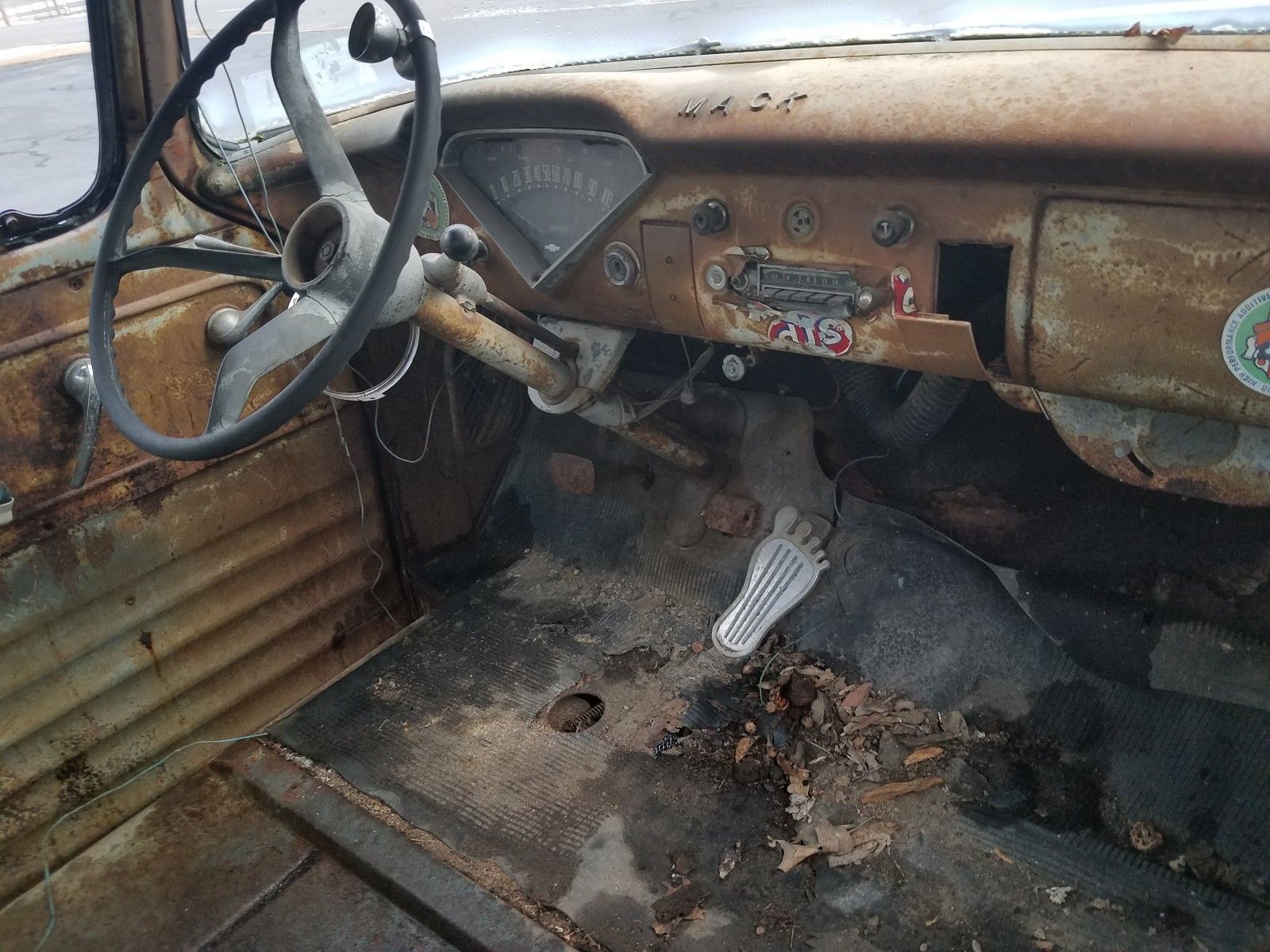 I love the barefoot gas pedal, I haven’t seen one of those in years. And, is that an STP sticker? Check. A lot of boxes were checked on this one during its creation, whenever that was. The seller says that it’s a “Former motorcycle club shop truck.” You can see that every square inch of this truck will have to be worked and reworked and then reworked yet again. Or not, just clear coat it, drop an SBC in it, and go. Hey, remember we have a three-day deadline on the reality show.