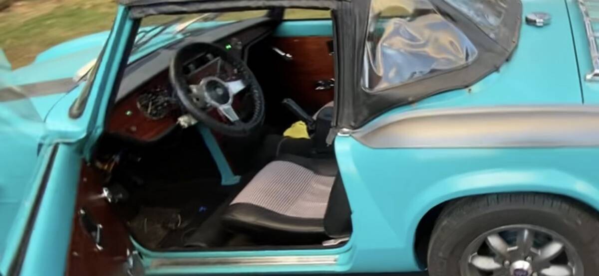 The interior was originally trimmed in vinyl and the car came standard with a folding soft–top. In 1979, the Spitfire received a few minor changes, including a new grille and bumper, revised rear lights and suspension, and a new instrument cluster. This car has obviously been modified so I am not sure what is stock and what is custom. This Spitfire is said to run and drive great.