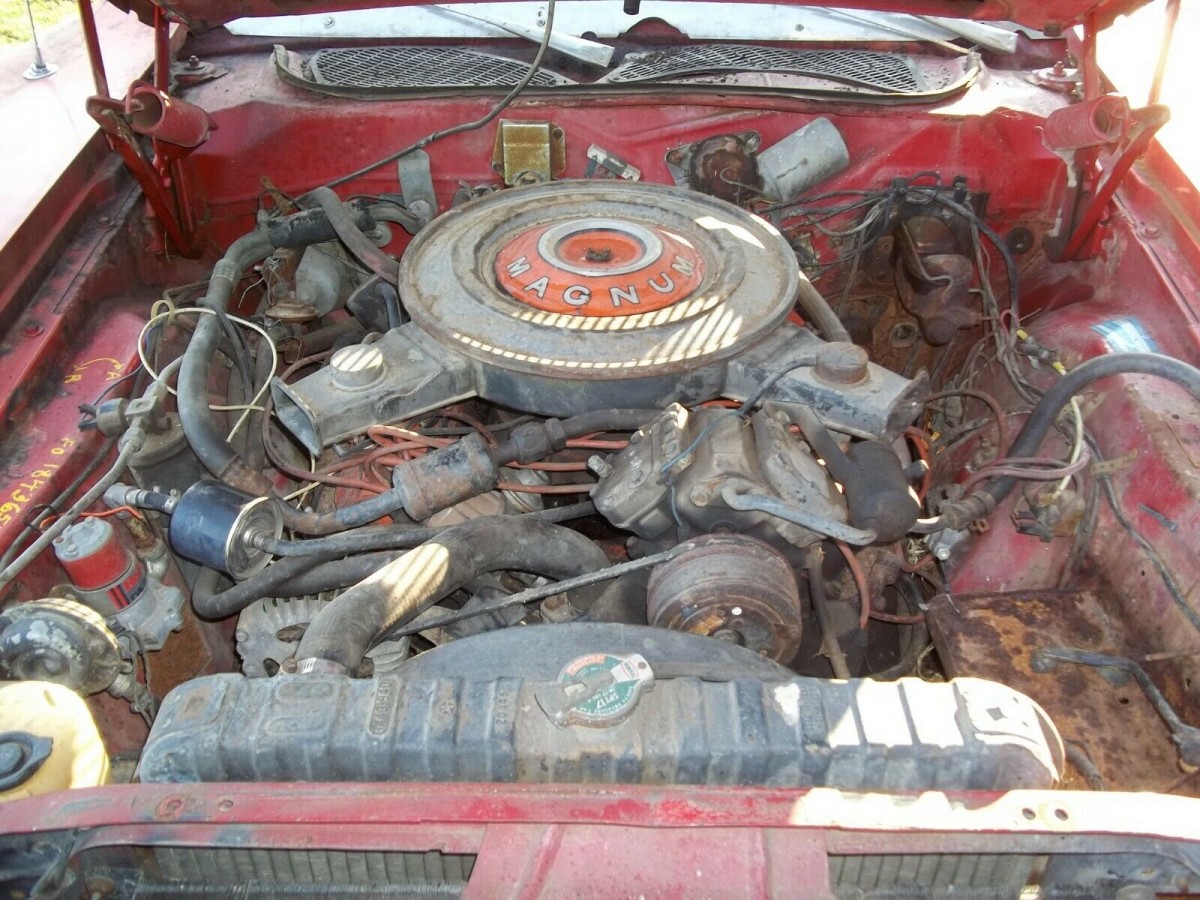 That shifter, what is that, an old Indy shifter? Looks kinda cool but it does look like a manual unit. 383 Magnum would make for a nice ride, to be honest I remember one just like this roaming around years and years ago same style wheels and even the Fa-ded in red paint color! Neat.