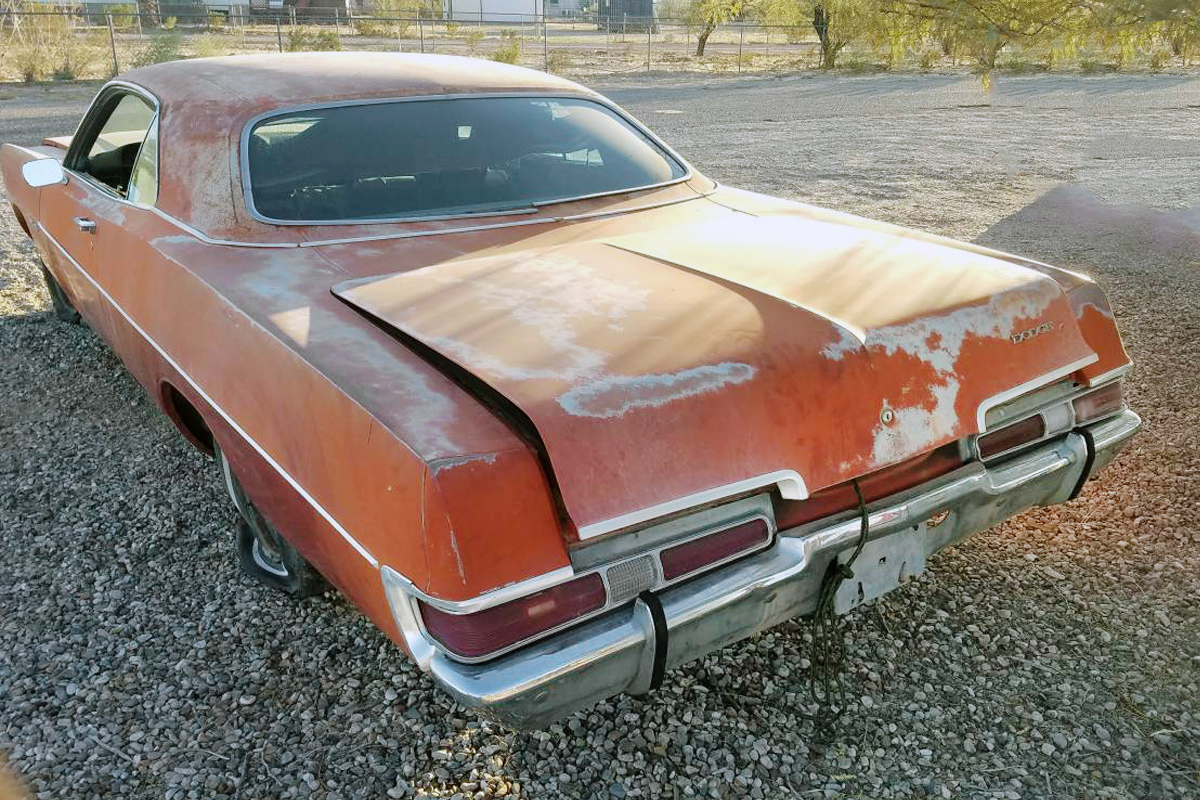 I had a ‘70 Polara sedan with a 318. I bought it from a friend in the mid-80s for $40. With a battery and some fresh tires it was ready to go. It was best on the highway at 70, smooth riding and quiet with a floaty feel. It was underbraked and the unibody was creaky with rust. This example looks like the rear bumper mounts have succumbed and the hood and trunk are sprung, but it looks like a good basis for a project car. You’ll need a big garage.